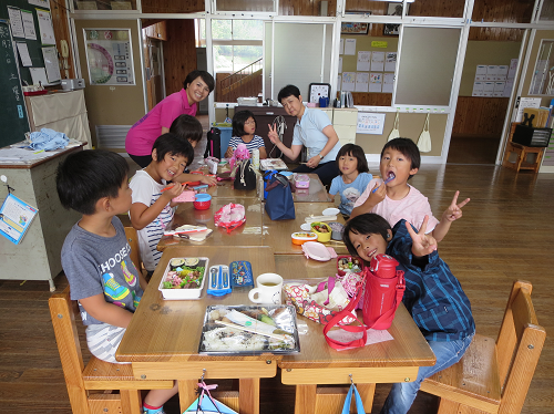 この地区の小学生は4人ですが、下の子たちとおうちの方、合わせて11人です。