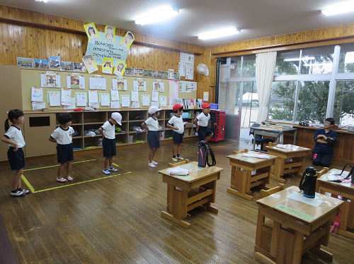 登校直後に、担任の先生に「ダンスのCDをかけてください!」とお願いをして練習していた1年生でした。(ホッ。)