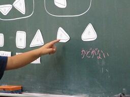 9月15日(水)、2年生の算数で研究授業を行いました。2年生は、「三角形や四角形を見つけよう」という課題に取り組みました。「三角や四角の形をしらべよう」という単元の第2時で、三角形や四角形を理解して弁別する内容でした。