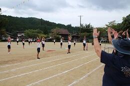 「みなさん、こんにちは。コロナウィルス感染症対策のため、前期終業式を外で行うことにしました。コロナ禍が続いていますが、節目のときを迎えています。節目では成長するために必ず、自分自身を振り返ってほしいと思います。校長先生からはまず、『伝統を受け継ぎ、発展させる』ことができたかどうかを聞きます。前期で一番がんばった場面を思い浮かべてください。できた人は手を挙げてください。もう一つ、振り返ってほしいことがあります。夏休み前集会や運動会で話しましたが、『気配り』のことです。『自分が人からしてほしくないことは、人もしてほしくないのだから、人にしてはならない』ということ。前期で友だちと一緒に活動した場面を思い出してください。できた人は手を挙げてください。二つの質問に対して、できた人はどんな風にできたのか、できなかった人はどうしてできなかったのかを考えてください。そして、「振り返り」を大事にしてほしいと思います。校長先生からのお願いです。それでは、『元気、元気、元気!with T』これで、お話を終わります。」