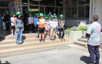 5月2日(金)、「みどりの少年団」の結団式を行いました。みどりの少年団は、40年以上続く、本校の伝統です。結団式のあと、早速、1・2年生がマルチがけをしてくれた畑に行き、サツマイモの苗を植えました。高学年の児童がていねいに苗の植え方を低学年の児童に教えている様子が微笑ましかったです。また、今年も意欲的にお世話をしようとする姿勢も見られました。