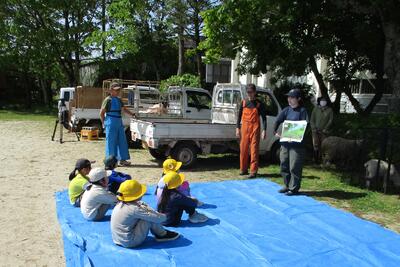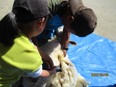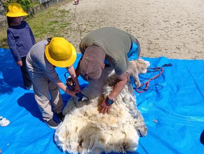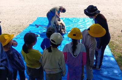 5月8日(木)の午後、1・2年生が生活科の時間に「羊の毛刈り」体験をしました。大きな羊や子羊を見て、子どもたちは大喜び。指導の先生から羊に関して説明を聞き、先生による羊の毛刈りを見た後、実際に一人一人が羊の毛刈りを体験しました。また、体験後、子どもたちは羊についていろいろと指導の先生に質問をしていました。今年もたいへん貴重な体験ができました。ありがとうございました。