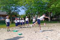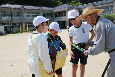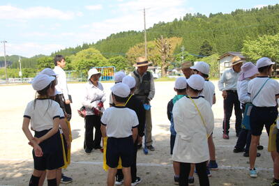 5月13日(火)、素晴らしい天気に恵まれ、3~6年生の子どもたちが、クラブ活動の時間を楽しみました。本年度のクラブ活動は、6年生を中心に、実施したいことを自分たちで考えて計画しています。第1回のクラブ活動は、昨年に引き続き、中原でグラウンドゴルフに親しんでおられる老人会の皆様とのグラウンドゴルフ交流会です。今回は、地域の方々と触れ合うこと、地域に貢献することを目的として実施しました。子どもたちは、老人会の皆さんから球の打ち方やスコアの書き方など教えてもらいながらコースを回っていました。