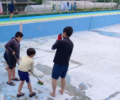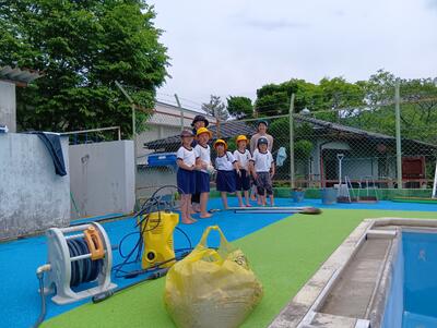 5月16日(金)、プール掃除を行いました。昨年度、プールサイドの改修が行われきれいになったプールを全校児童で掃除しました。遊び出す児童もなく、ていねいにプール内外を掃除する姿に感心しました。6月初旬のプール開きが楽しみです。