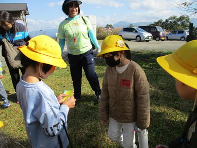 最後に,下城さんにお土産までいただき,ご満悦の1年生でした。もちろん,めあてにもあった友だちの名前もしっかり覚えて帰ってきましたよ。来月は,草スキーが予定されています。