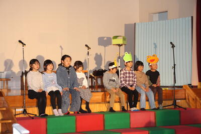 これまで学習したことを,ステージ上で堂々と発表した子どもたち。短い練習期間でしたが,長いセリフやいくつもの役割を覚え,成長した姿を保護者や地域の方々にお見せすることができました。寒い中にご来校いただいた皆様,本当にありがとうございました。