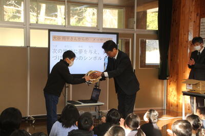 さて,今日から第4ステージが始まりました。子どもたちは,17日間の冬休みを終え,元気に登校してきました。今回は,冬休み明け集会の始めに,大谷選手から送られてきたグローブの贈呈式が行われ,グローブを目の前にして,みんな「オー!」と歓喜の声が聞かれました。その後,校長先生から,目標達成に向けてのお話と自分の命を守ることの大切さについてのお話がありました。第4ステージは,今日を入れて51日間(6年生は50日間)です。子どもたちが自信をもって次の学年に上がれるよう,しっかり準備をしていきたいと思います。