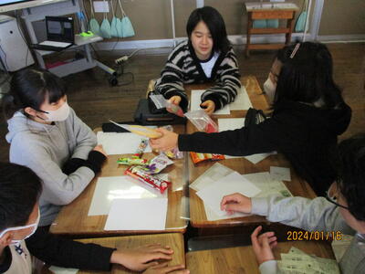 1月16日(火),5・6年生を対象に,町民課の方と検査技師の方より糖尿病予防の出前授業が行われました。日頃から口にするジュースやお菓子にどれくらい砂糖が入っているのか,どれくらいのカロリーがあるのかなど,実物やスライドをとおして教えていただきました。予想以上に砂糖が多く入っていることを知り,驚いていた子どもたち。その後,間食時のカロリー摂取量を参考にグループでお菓子の組み合わせを考えたり,これからの自分の生活を見直したりしました。自分の健康について身近なところから考える良い機会となりました。ぜひ,家庭でも話題にしていきたいですね!