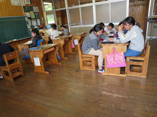朝自習の時間(先生たちは朝の職員会議の時)、1年生の教室の『先生』は5.6年生です。