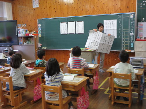 入学して約1ケ月がたった1年教室で、国語の発表会がありました。