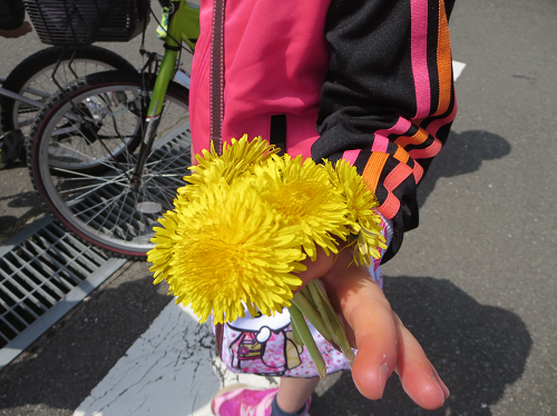 帰りに摘んで持っていた『タンポポの花束』。