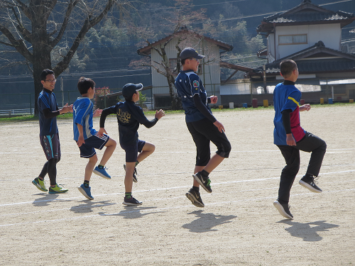 「ほ」(保)育園の卒園式(3月27日)に出席する校長先生が運動場をとおるとき、春休みの第1回かけっこ教室が始まっていました。