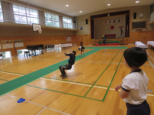 はじめてラダーをする1年生もいましたが、先生や、ゲスト中学生や、やや中学生がチャカチャカするのをよく見てまねをして、ゆっくりからしました。