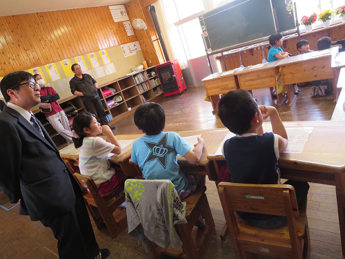 前日、交通教室が雨のため室内となり、実技ができなかったから、と駐在さんもおいでくださいました。