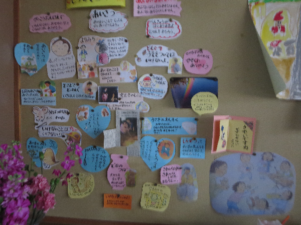 子どものおかえしが届いているのが(朝のお忙しい時間においでいただいているので、すみませんねぇ・・・と思うところもあるのですが)うれしかったです。