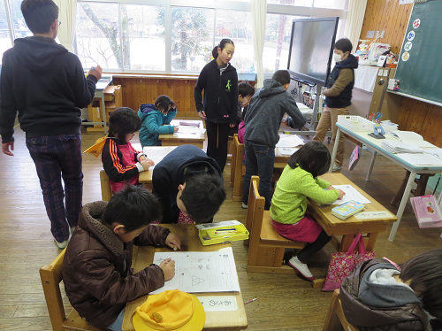 新一年生一日体験入学の日にお休みだったお子さんが、おうちの方と一緒に学校に来てくれました。