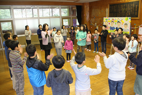 1月からずっと、朝の会が終わると、音楽の先生の教室からのイントロが聞こえてきて、みんなが集まり練習してきた「♪絆」を歌いました。
