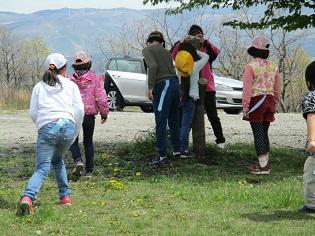 ちょっと曇り空でしたが、中原小学校の歓迎遠足が実施されました。歩くと暑く感じるものの、風がよく吹いていたのでちょっと涼しい?感じでした。バスで押戸石の入口まで行き、そこから2km歩き、押戸石のふもとの広場でレクレーションをしました。実は、このレクレーションの内容は5・6年生の9人が計画したものです。最初に1年生が自己紹介をしました!