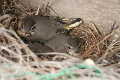 「キセキレイのヒナの毛がふわふわしていました。ほんとうにさわってみたいです。目がキラキラしていました。こえは、ぴぴぴとないていました。体の形は、しかくまるのような形でした。たまごは、人がうむ数より多くうんでいました。木と草ですをつくっていました。せいちょうがたのしみです。」