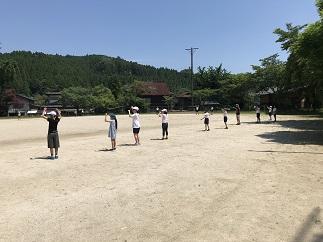 梅雨の合間の晴天が続いています。今日(6月1日)の業間に予定されていたのは全校音楽。しかし、コロナ禍のため、歌をうたうことができません。そこで、担当の先生が考えたのは、「天気が良いので運動場で踊りましょう!」というアイディア。子どもたちは間隔を広くとって待っていると・・・かかってきた曲は、そう、マジンガーZ!