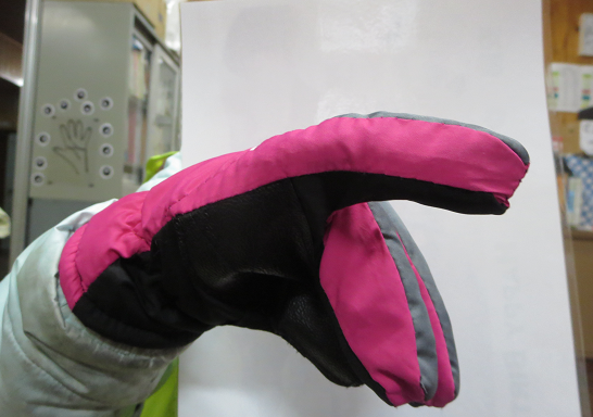 朝ミーティング後、校舎に入ろうとしたときに、「きれい!」と、お友だちの洋服に付いた雪を指さしていました。