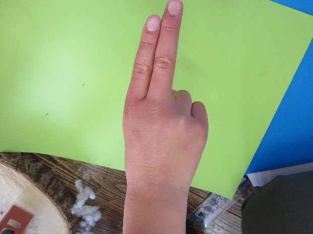 1,2,3の指をあげます。