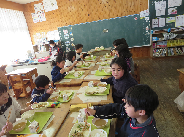 心を込めてつくってくださる給食センターの方に、子どもの顔をいつも見てもらいたいな~と思うので、今日は食事中の写真を撮りました。
