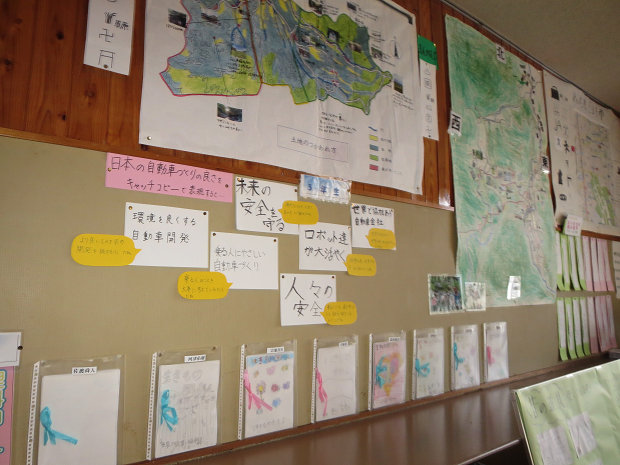 校内の壁を見渡すと廊下や教室にいろいろな掲示物があります。