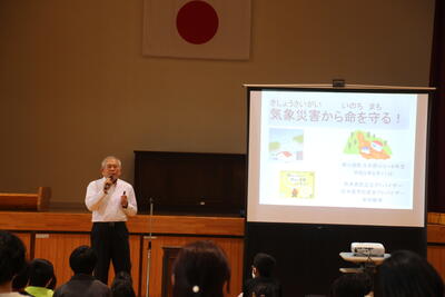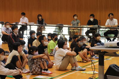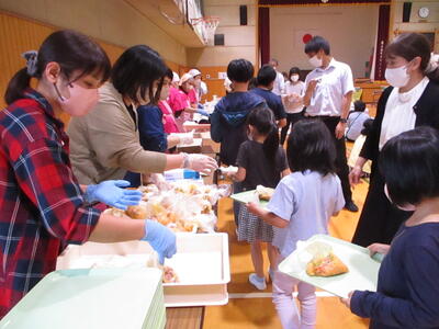 災害への備えとしての「マイタイムライン」作成や,各自治体のハザードマップの確認,水や非常食を準備しておくこと,家族で話し合っておくことなど,分かりやすく教えていただきました。防災食作りは,体育館を避難所と想定して行いました。「パッククッキング」という方法で,熱に強いポリ袋に食材を入れ,袋ごと沸騰したお湯に入れて「チキンライス」「さばと大根の煮物」「ココア蒸しパン」を作りました。子どもたちからは,「作る前に思っていたよりおいしかったです」とか「みんなできて楽しかったです」などの感想が聞かれました。