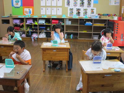 終わってみると,「最初はもぐれなかったけど,できるようになりました。」「プールでもぐったのが楽しかったです。」「プールで浮かびました。」「顔をいっぱいつけました。」など,子どもたちはそれぞれに感想をもつことができました。