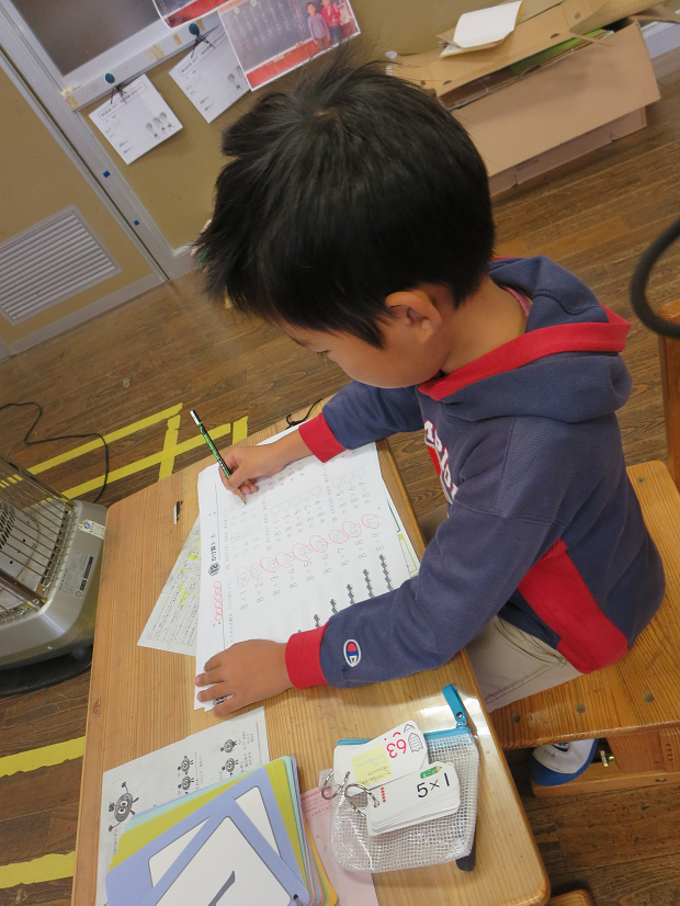 1年教室で1年担任(6年生の元担任)から「答えは教えないで!」と言われながら、青ペンや点々で書いたりする方法をいろいろ使って、○をつけるまで横にいてくれていた6年生は「先生」みたいでした。