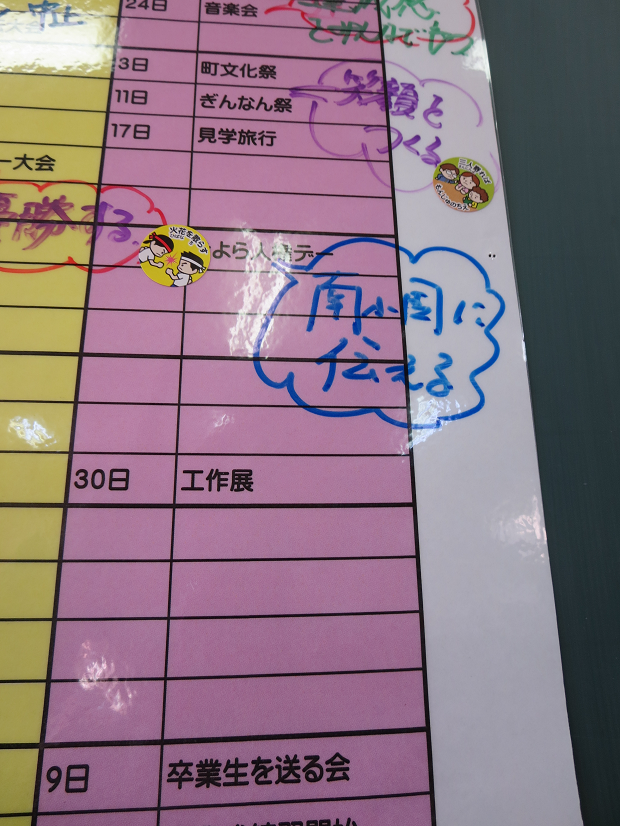 3月までのスケジュールのところに、「優勝する!」と学級で話した時、書き込んだコメントが入っていました。