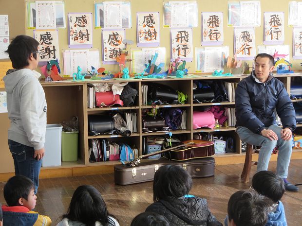 5.6年生教室では町長さんが、授業のあと一緒に。