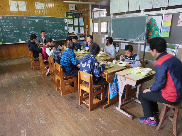 子どもと町づくりをつなげてくださった町長さんと、授業の後一緒に給食をいただきました。