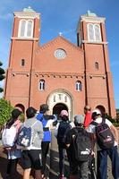 次に、浦上天主堂。途中、原子爆弾によって吹き飛ばされたアンジェラスの鐘を見ました。