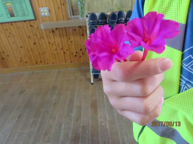 登校中につんできた「オシロイバナ」?を大事に手に持ってきました。
