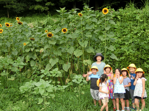 春に上島さんからいただいたひまわりが、こ~んなに大きくなりました!