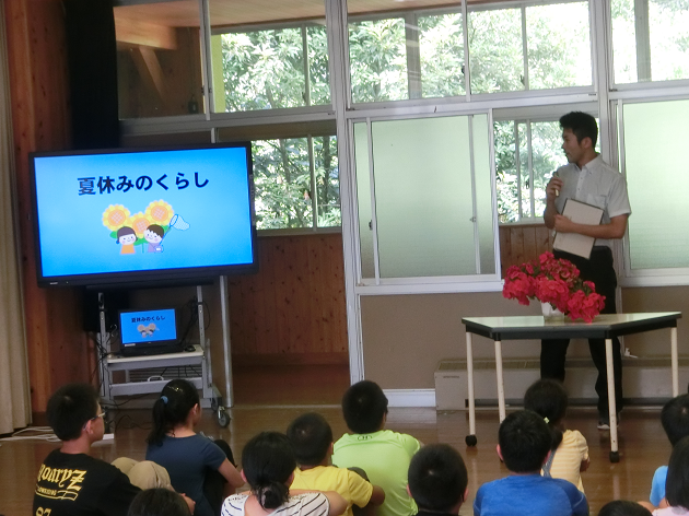 帰る前に、全校集会で、校長先生と生徒指導の島田先生から、有意義で安全な夏休みにするために・・・と、お話がありました。