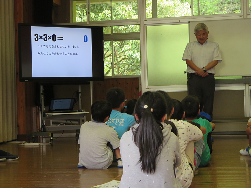 校長先生のお話は、その「31人」、一人ひとりが、自分の力を発揮すると、こんなにもなるよ!と算数で教えてくれました。6月4日日曜日の親子作業をしたときのことをだしながら。