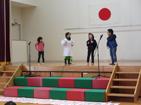 合唱曲 最後のフレーズ「♪とんでゆけ~ぼくの~ひこ~おき~」は、練習では低空飛行でしたが、本番に強い子どもたち、これまでの練習の成果で、楽譜通りに飛行機がたか~く飛びました!