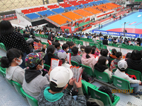 この日は多目的ホールで「なかよし給食」(全体会食)です。
