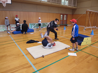 そのあと、低・中・高学年に分かれて、体育館でひとりずつコントローラーの操縦する2つのコースと、もうひとつは、チーム対戦のタイプも体験させてもらいました。(毎年 新しくなります!)