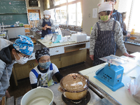1.2年生が稲刈りをしたお米を炊きました。玄米と白米の両方を全学年でたべました。