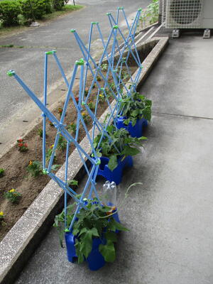 「あさがおの花が咲いてます!」週明けの朝,子どもたちはあさがおの花が咲いているのに気づき,大喜び。6月に咲くなんて珍しいことです。毎日の観察の中で,葉っぱが大きいことやツルがぐんぐん伸びていることに気づいていた子どもたちでしたが,早くも花が咲き,これからどんな色の花が咲くのかますます楽しみにしています。