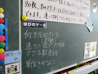 6年生は「1時間で90枚と12分で20枚印刷するプリンター どっちが速い?」でした。