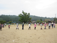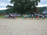 ウォーミングアップをしながら、久しぶりにあった子たちは、お盆に会った人や行ったところや映画や買ってもらったものや今夜のテレビのことなどをお互い話したりしていました。