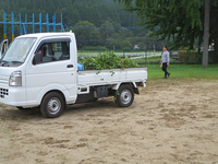 業者さんの車にみんなで積んで、最後にPTA会長さんがみんなにお礼を言って終了!