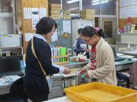 4年生がふたりではかり、記録をします。