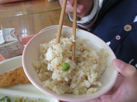 たけのこごはんを食べながら