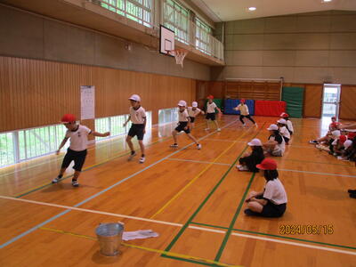 15日(水),今年度の新体力テストがありました。実施前の朝は,子どもたちが自主的に準備された運動場の草取りもしていて,たいへん感心したところでした。まず外で,ソフトボール投げ・立ち幅とび・50M走を行い,その後体育館で,反復横跳び・上体起こし・長座体前屈を行いました。ペアで計測をする場面もあり,お互い協力しながらテストを進めることができました。結果をもとに,これからの体育の授業を中心に体力向上に生かしていく予定です。